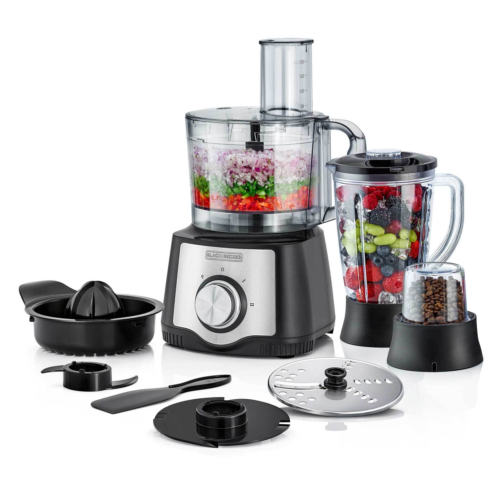 Black + Decker 4 in 1 Food Processor, 1000 Watt, Silver and Black Black+Decker Food Processor Fx1050-B5 Compact 4 in 1 setup (food processor + blender + grinder + dough maker). Extended range of accessories to perform 31 functions. • comes with a wide range of attachments to perform 31 functions for the versatility of use. It comes with an extended range. 4 in 1 food processor (food processor + blender + grinder + dough maker) 2. Black+Decker Food Processor Fx1050-B5.